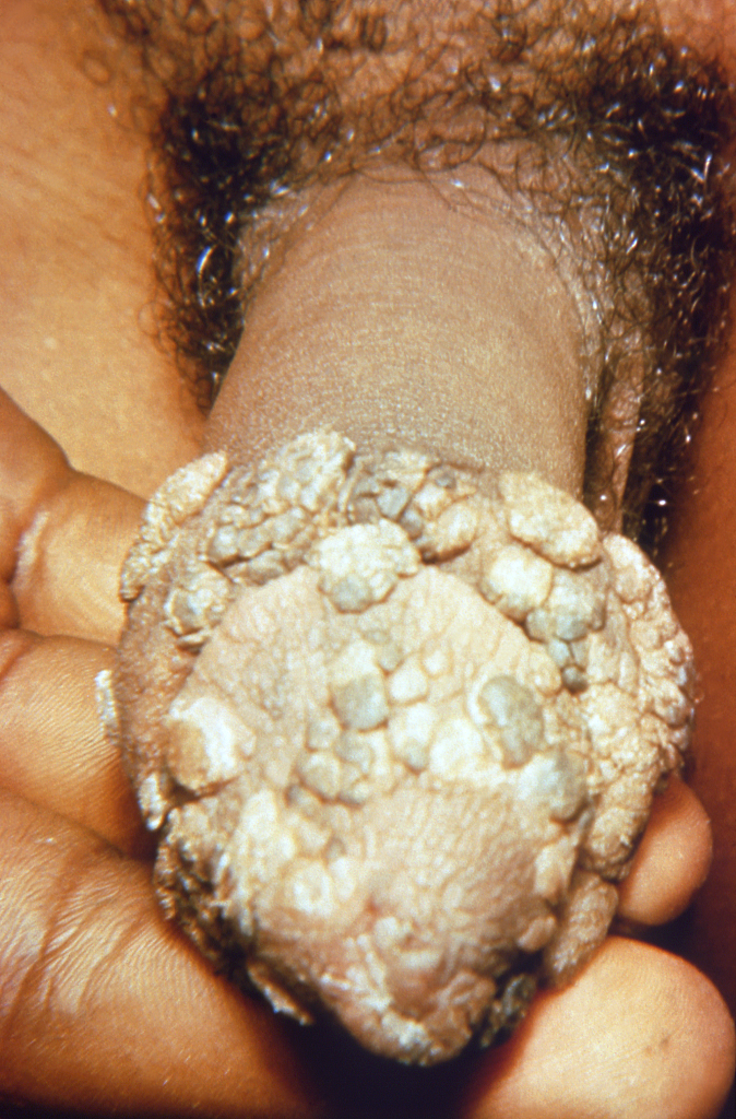 Abb. 2: Centers for Disease Control and Prevention (CDC): Stark ausgeprägter Feigwarzenbefall am Penis (1976). Gemeinfrei. Online: https://phil.cdc.gov/Details.aspx?pid=16412 Aufruf am 06.06.2024.